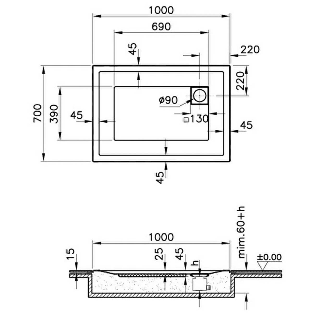 Vitra 100x70cm, rectangulara zero surface | 57380001000 White, Colectia Serie T Vitra