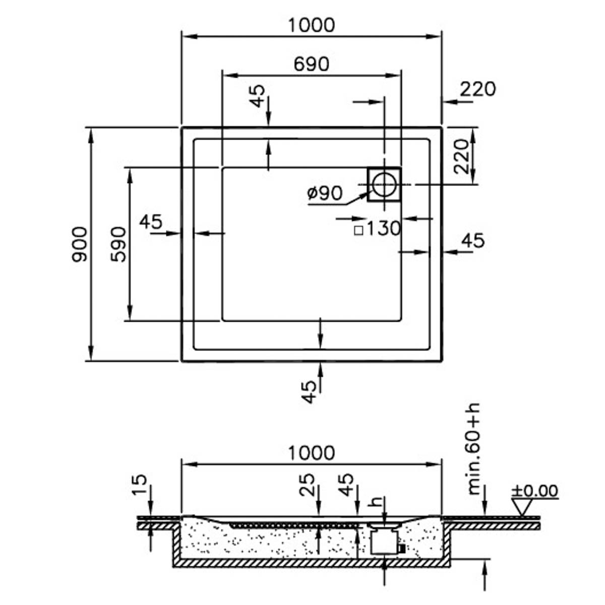 Vitra 100x90cm, rectangulara zero surface | 58510001000 White, Colectia Serie T Vitra