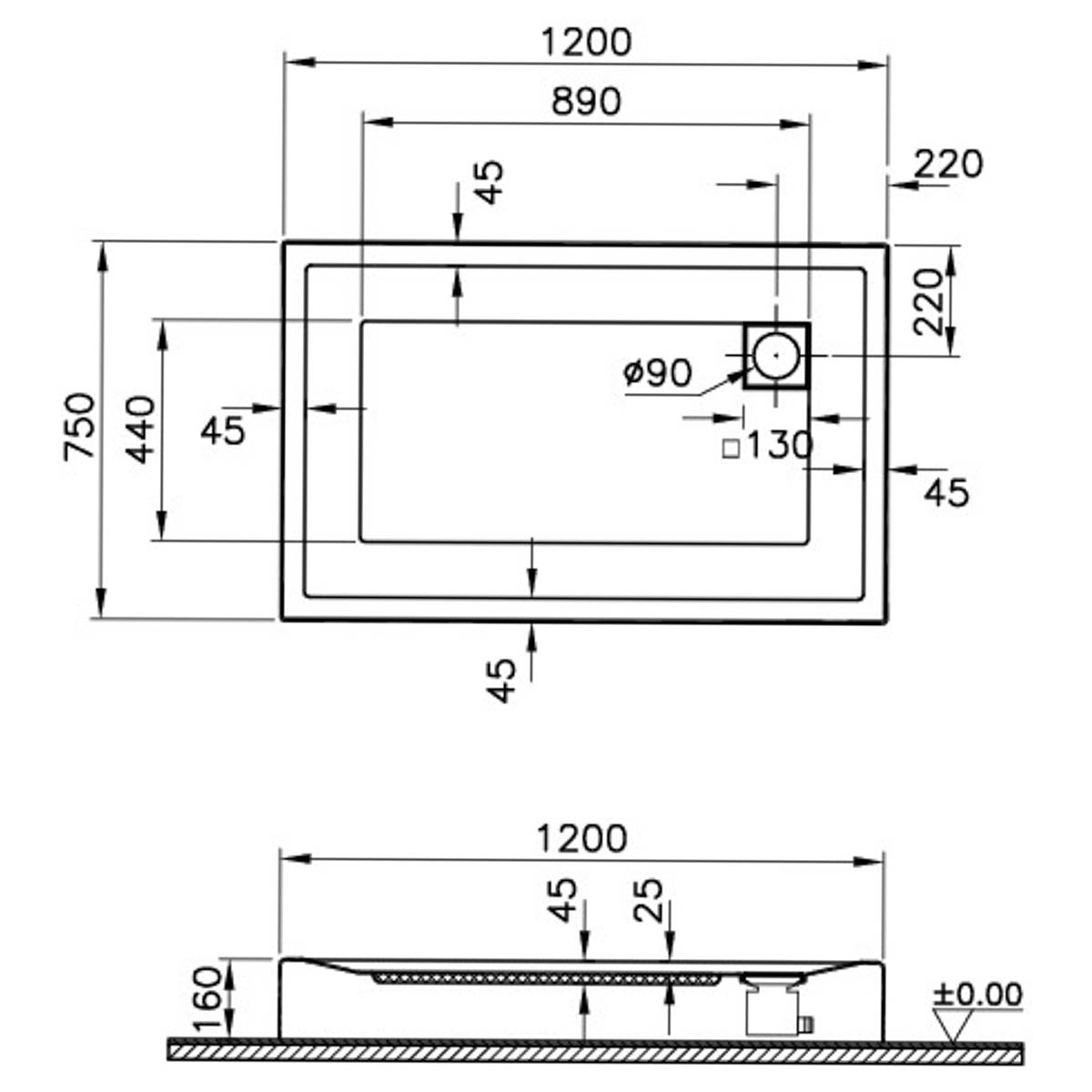 Vitra 120x75cm, rectangulara mb | 57120001000 White, Colectia Serie T Vitra