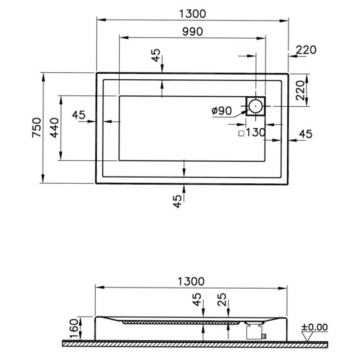 Vitra 130x75cm, rectangulara mb | 57140001000 White, Colectia Serie T Vitra