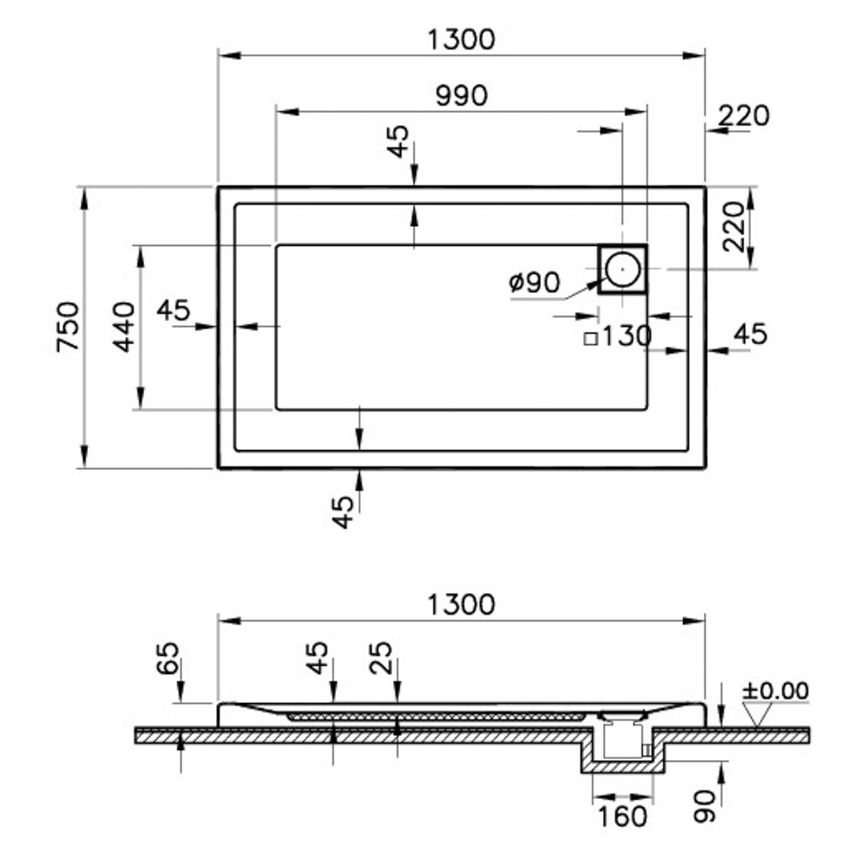 Vitra 130x75cm, rectangulara mf | 58340001000 White, Colectia Serie T Vitra