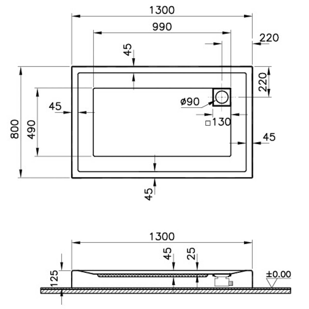 130x80cm, rectangulara mb