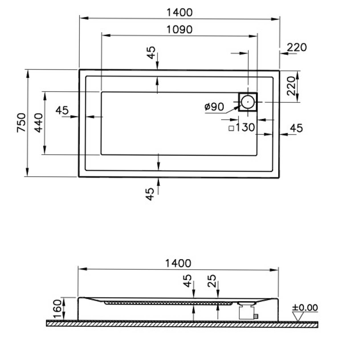 Vitra 140x75cm, rectangulara mb | 57160001000 White, Colectia Serie T Vitra