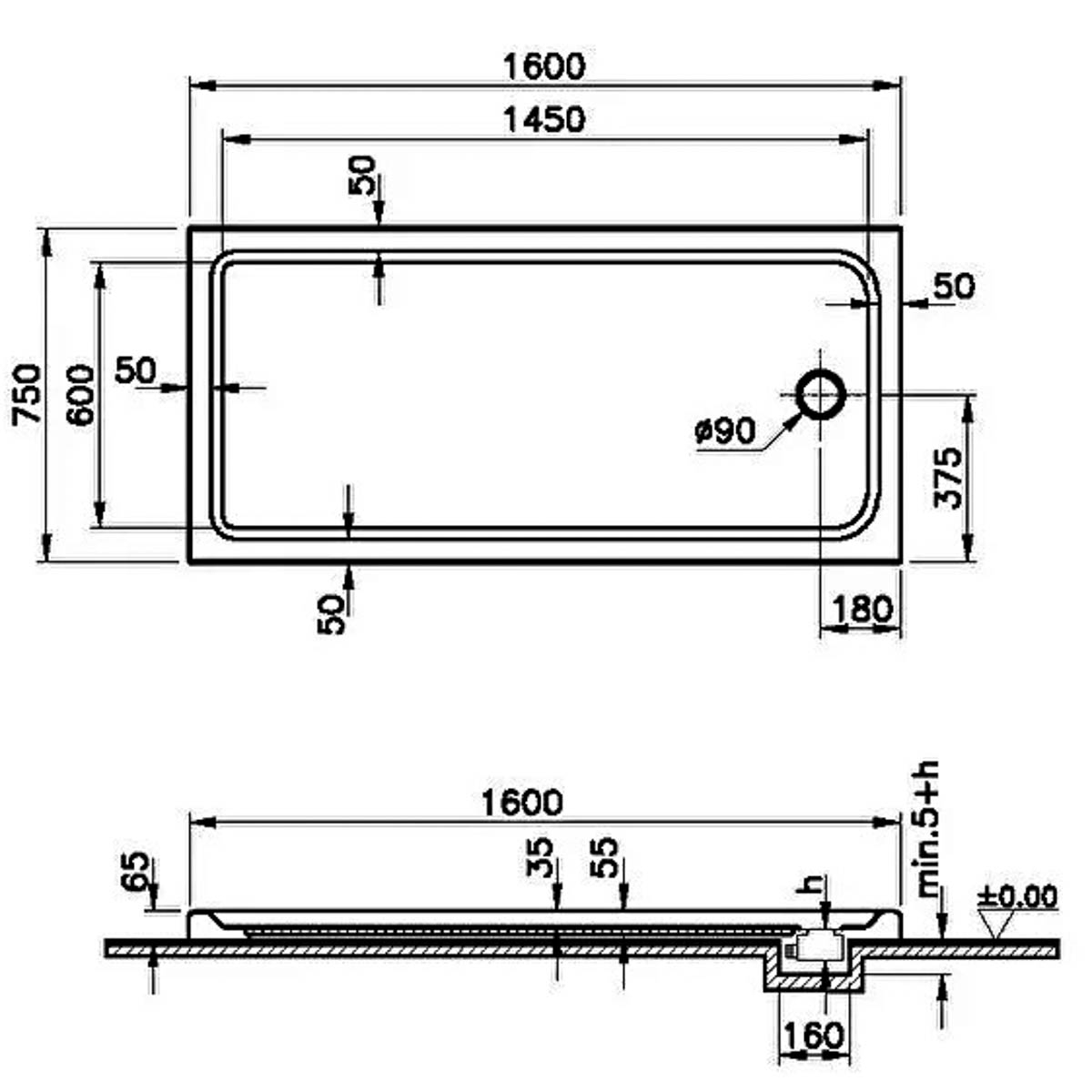 Vitra 160x75 monoflat | 64450001000 White, Colectia Optimum Neo Vitra