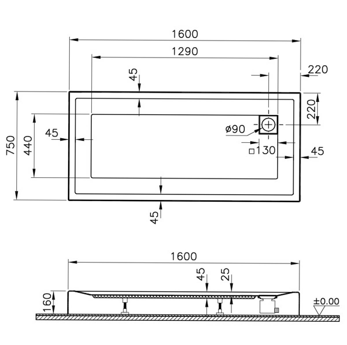 Vitra 160x75cm, rectangulara mb | 57200001000 White, Colectia Serie T Vitra