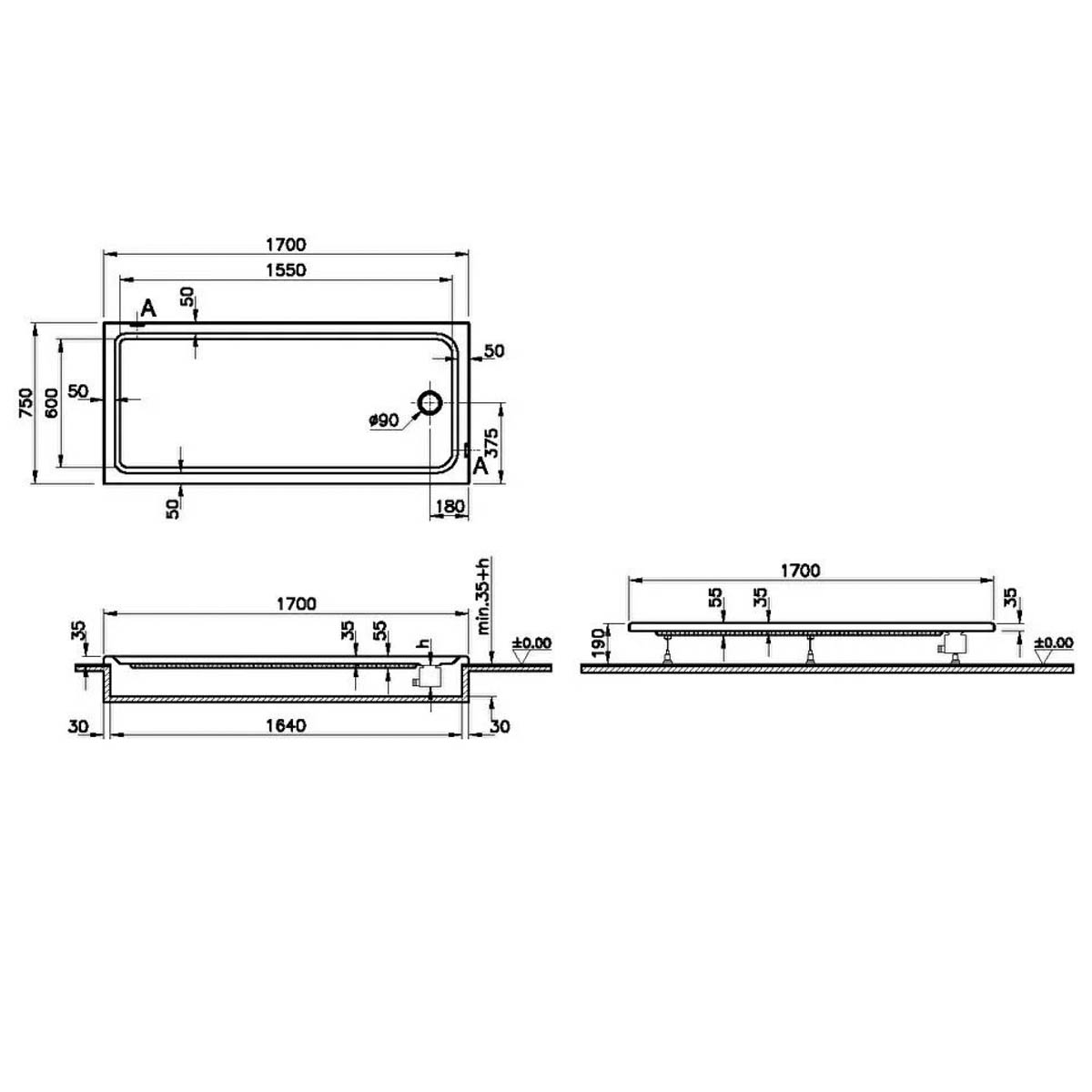 Vitra 170x75 flat | 64690001000 White, Colectia Optimum Neo Vitra