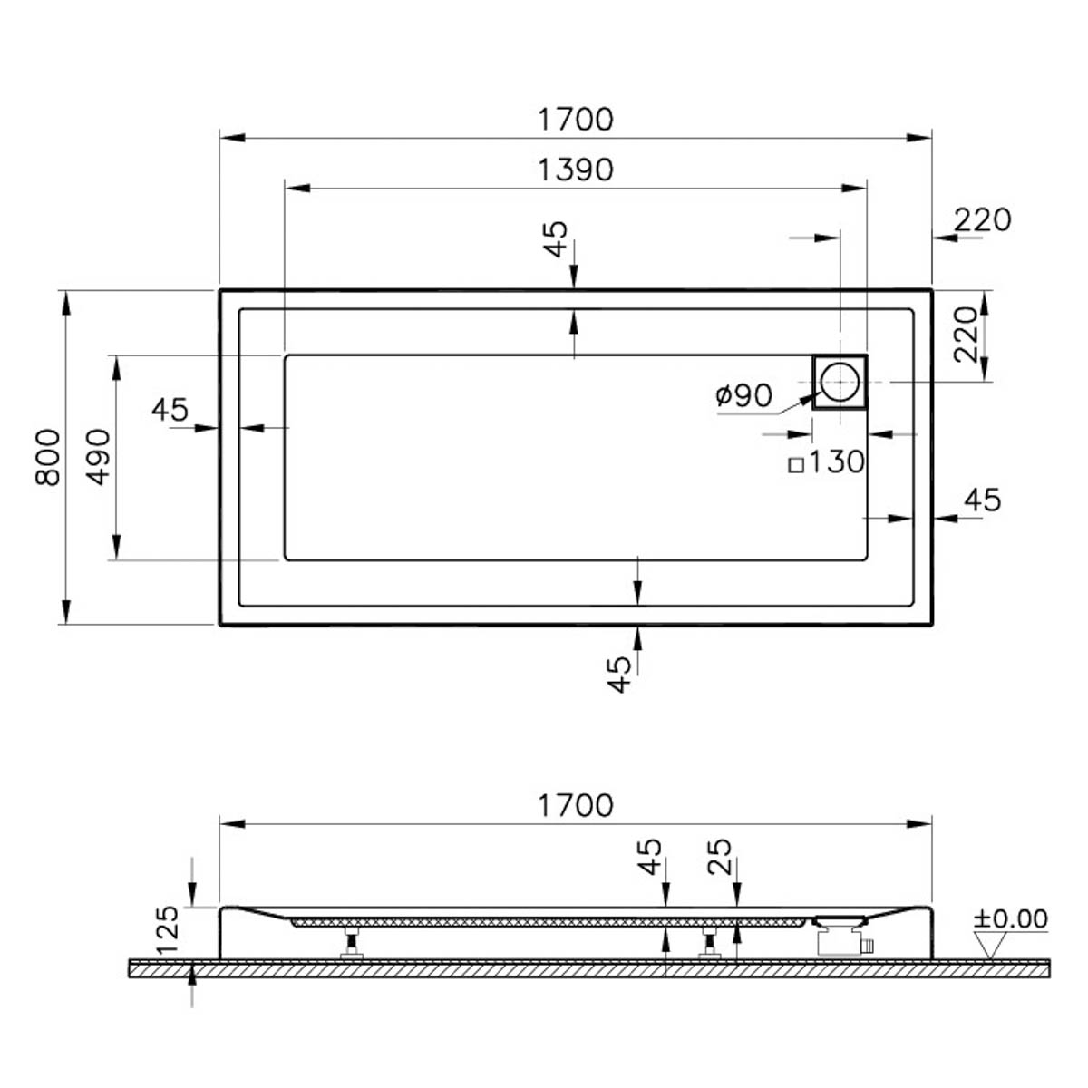 170x80cm, rectangulara mb