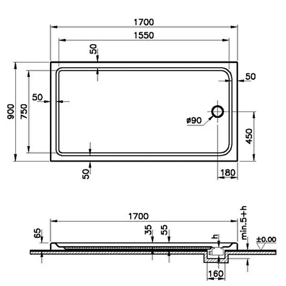 Vitra 170x90 monoflat | 64410001000 White, Colectia Optimum Neo Vitra