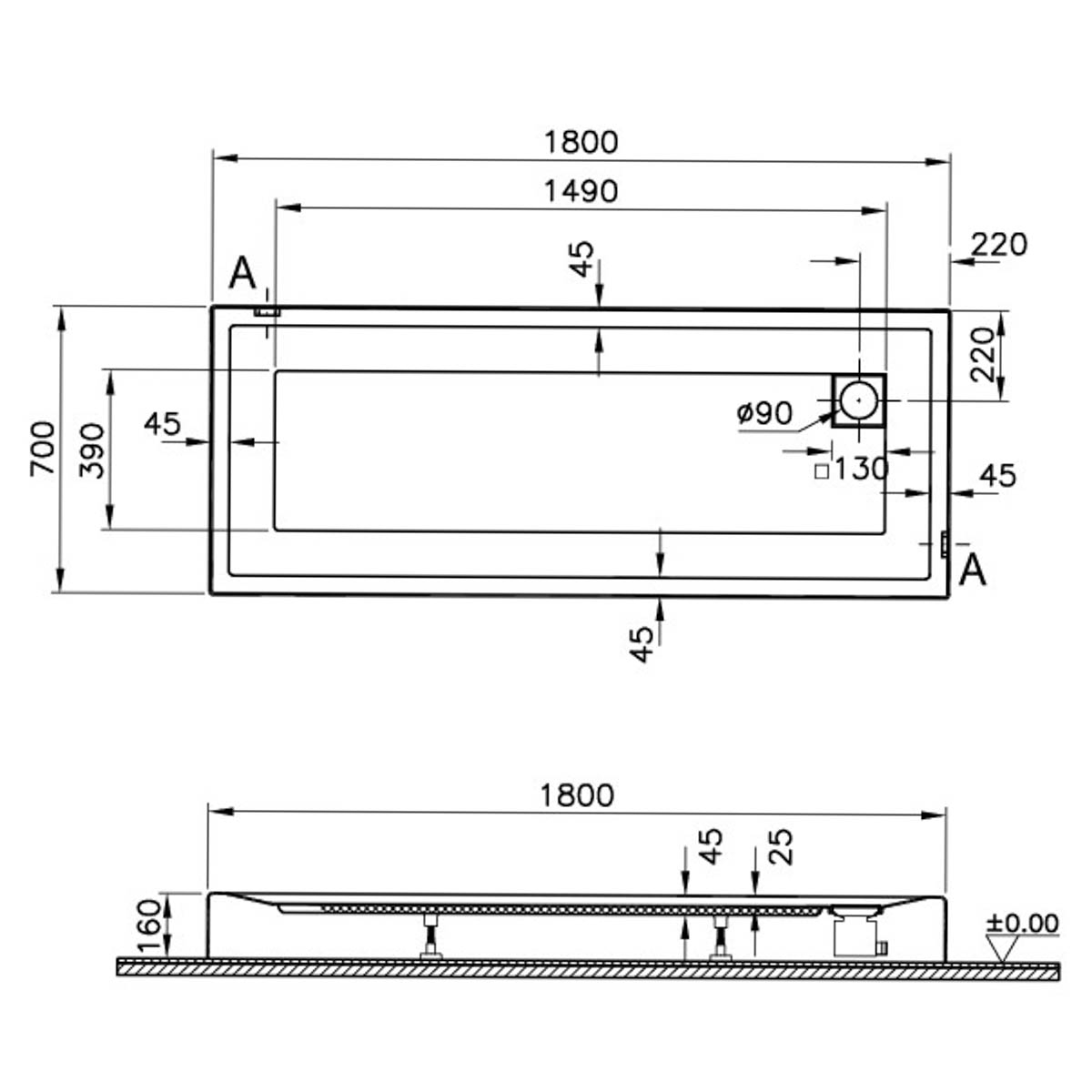 Vitra 180x70cm, rectangulara mb | 57010001000 White, Colectia Serie T Vitra