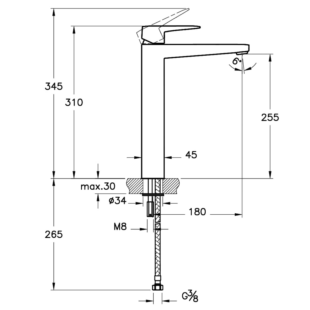 Inaltimea iesirii (mm): 255
