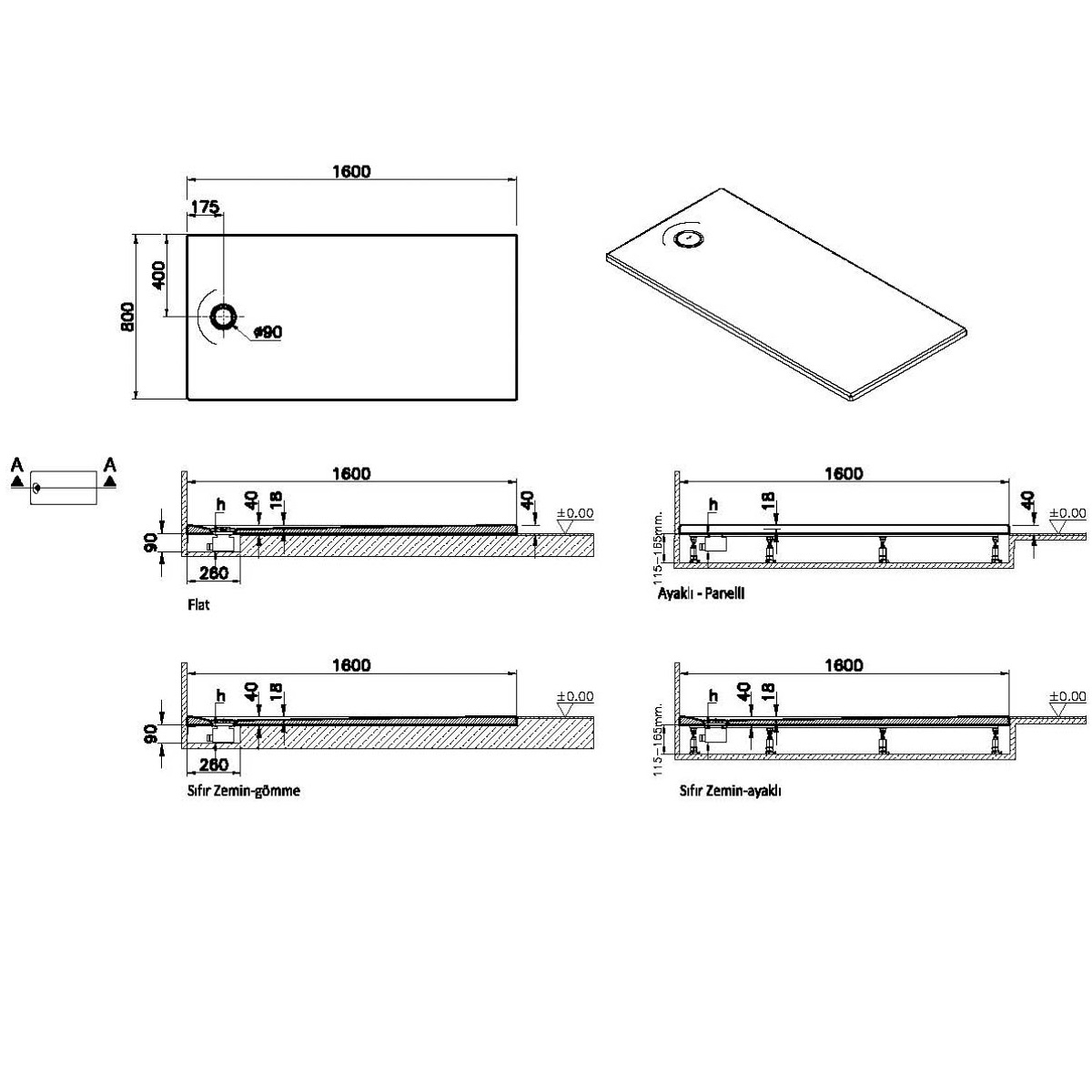 Vitra Cadita de dus slim 160x80 rectangulara texturata taupe | 65240001869 Textured Taupe, Colectia Leaf Vitra