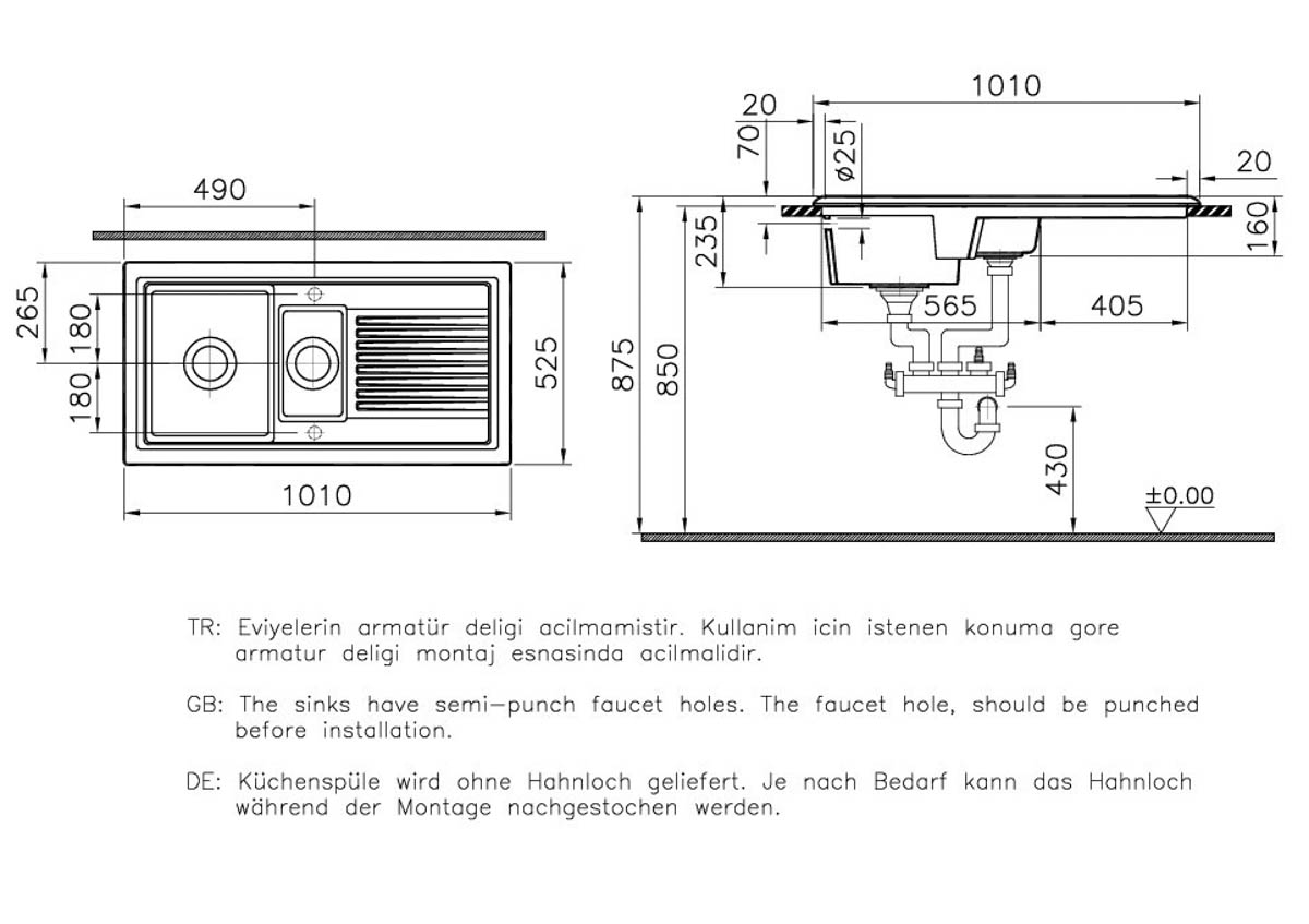 Detaliu Orificiu Baterie - Obiecte sanitare din Ceramică: Double Tap Holes