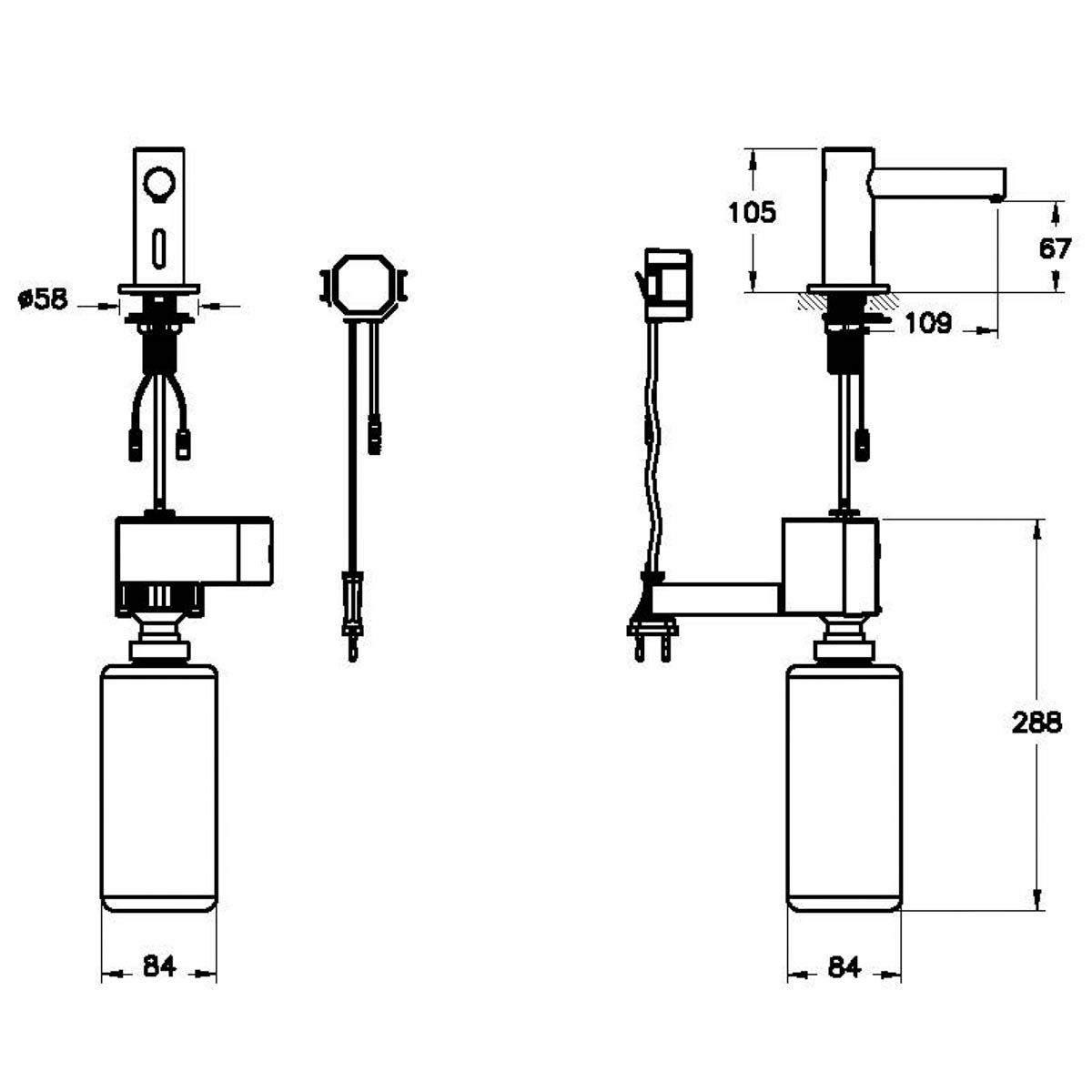 Dozator de sapun cu senzor, pe blat, alimentare curent de la retea, scurt | A4469934 Nichel periat, Colectia Origin Vitra