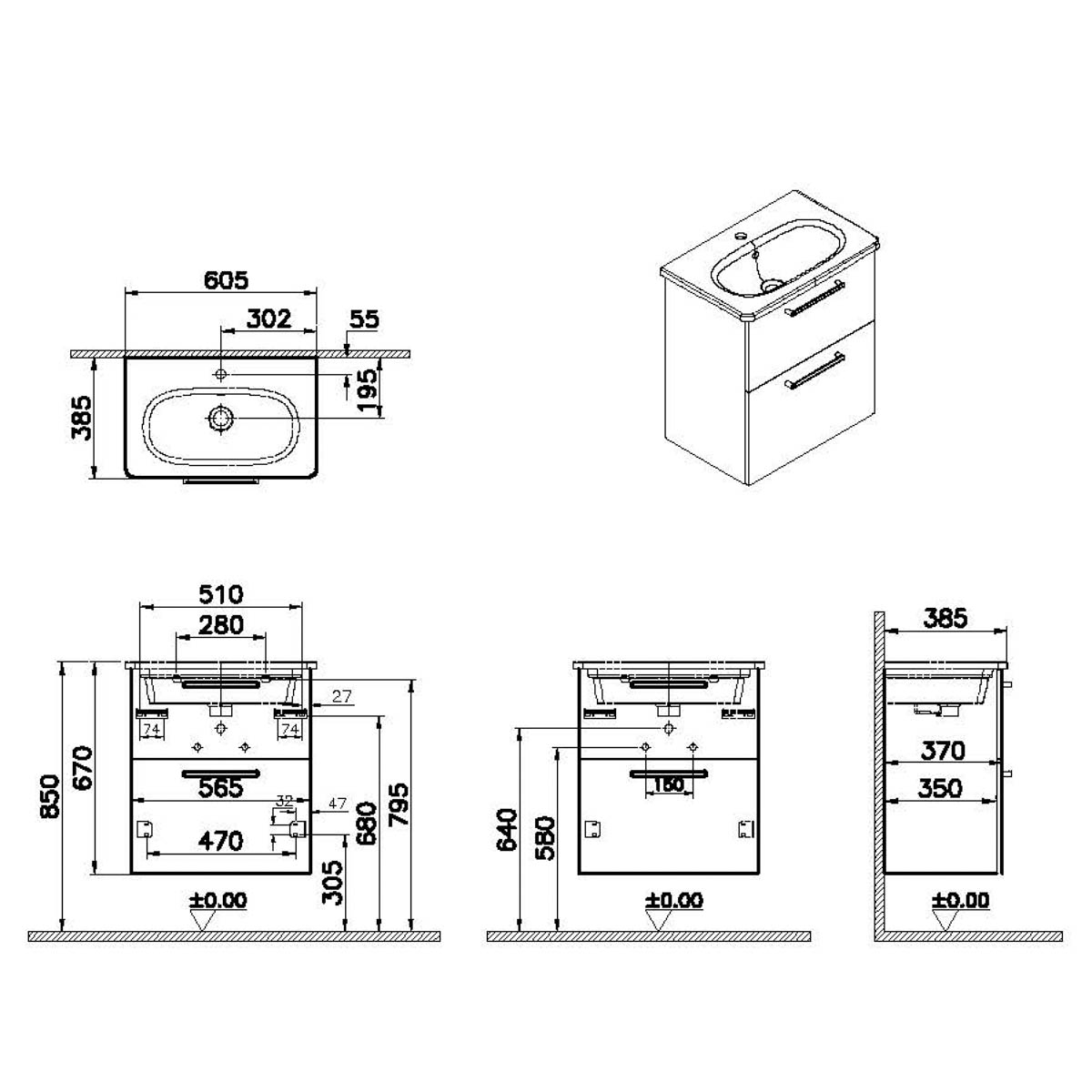 Descriere Calculată 1: Root, Vanity unit, 60 cmcompact,two drawers
