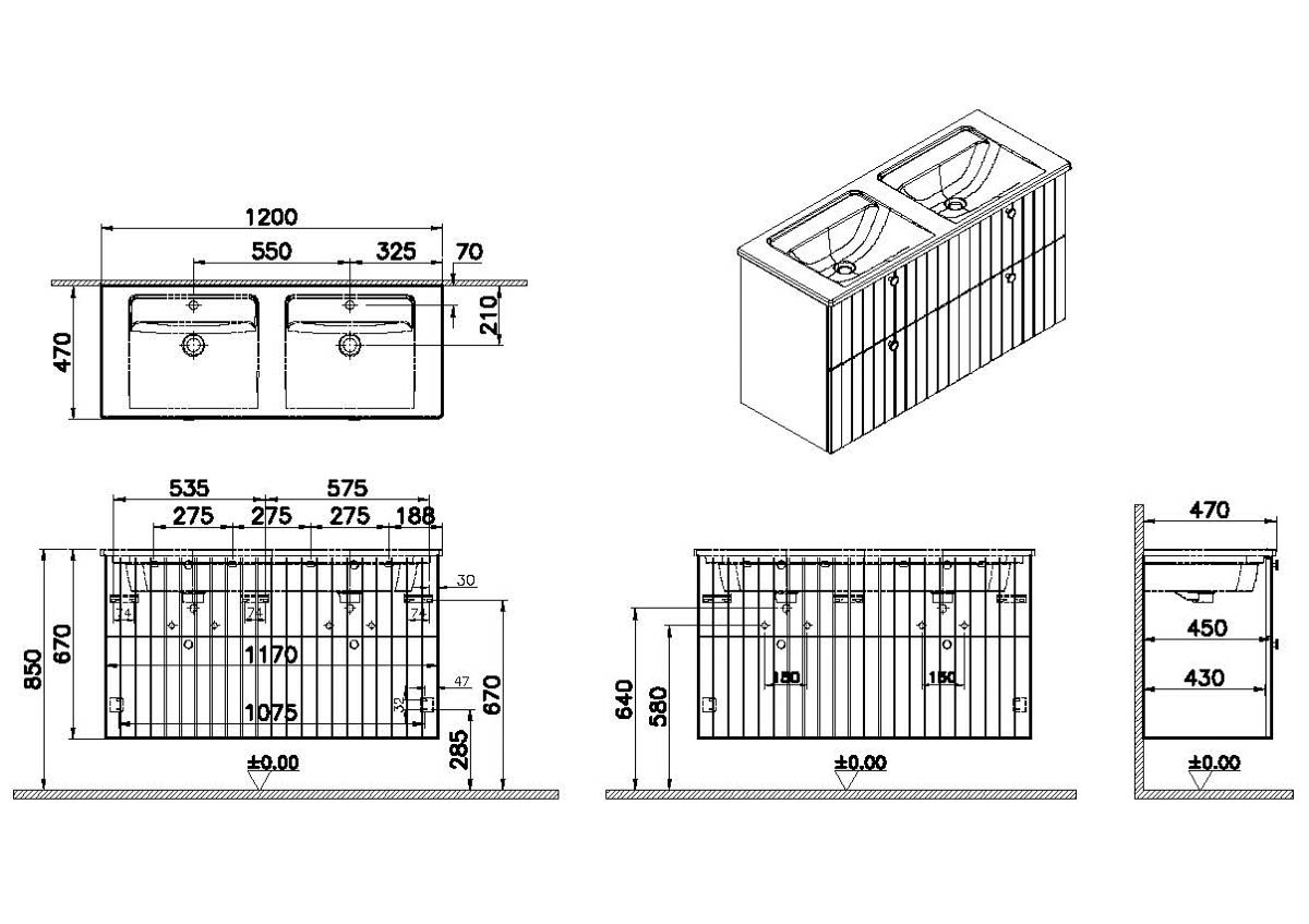 Descriere Calculată 1: Root Groove, Vanity unit, 120 cm,four drawers