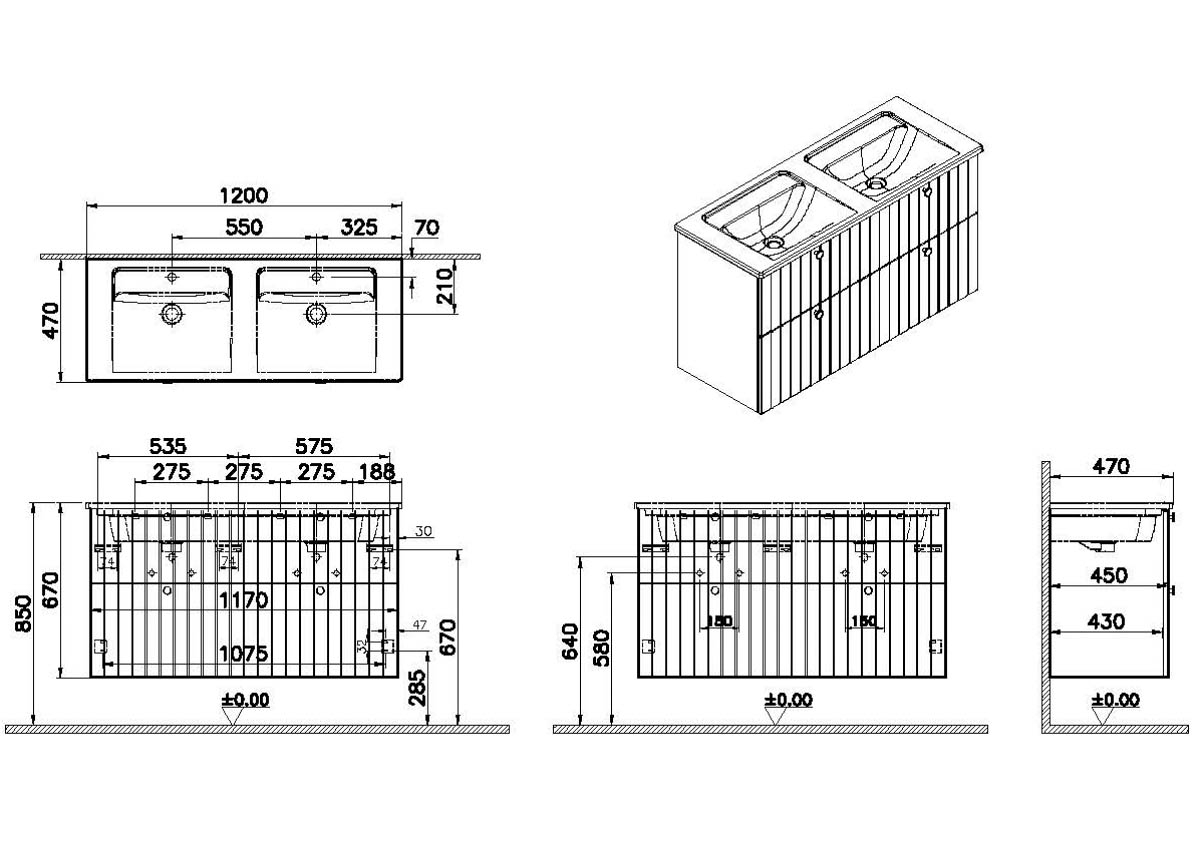 Descriere Calculată 1: Root Groove, Vanity unit, 120 cm,four drawers