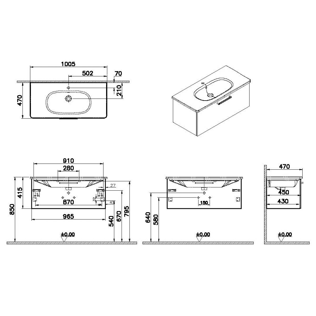 Descriere Calculată 1: Root, Vanity unit, 100 cm,one drawer
