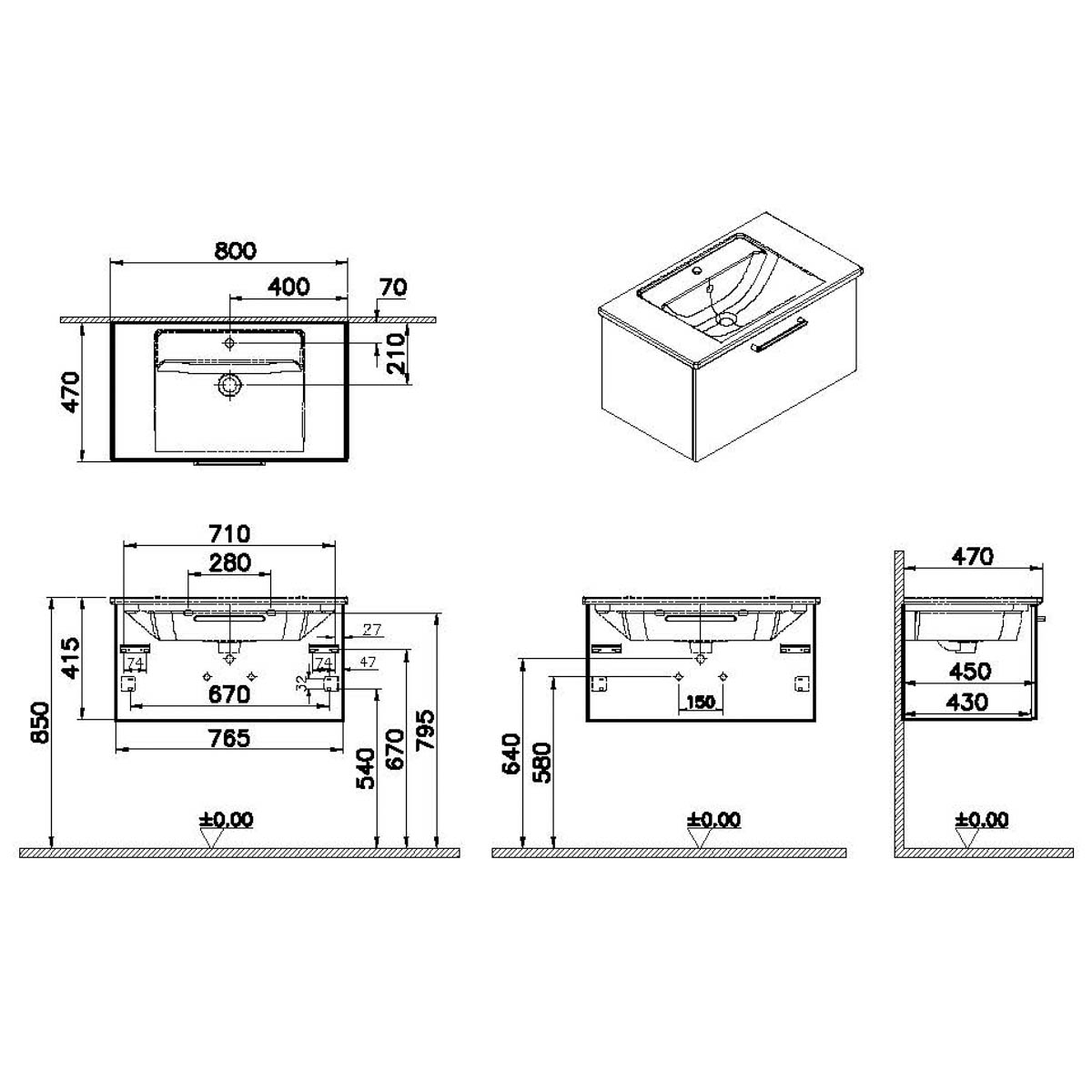 Descriere Calculată 1: Root, Vanity unit, 80 cm,one drawer