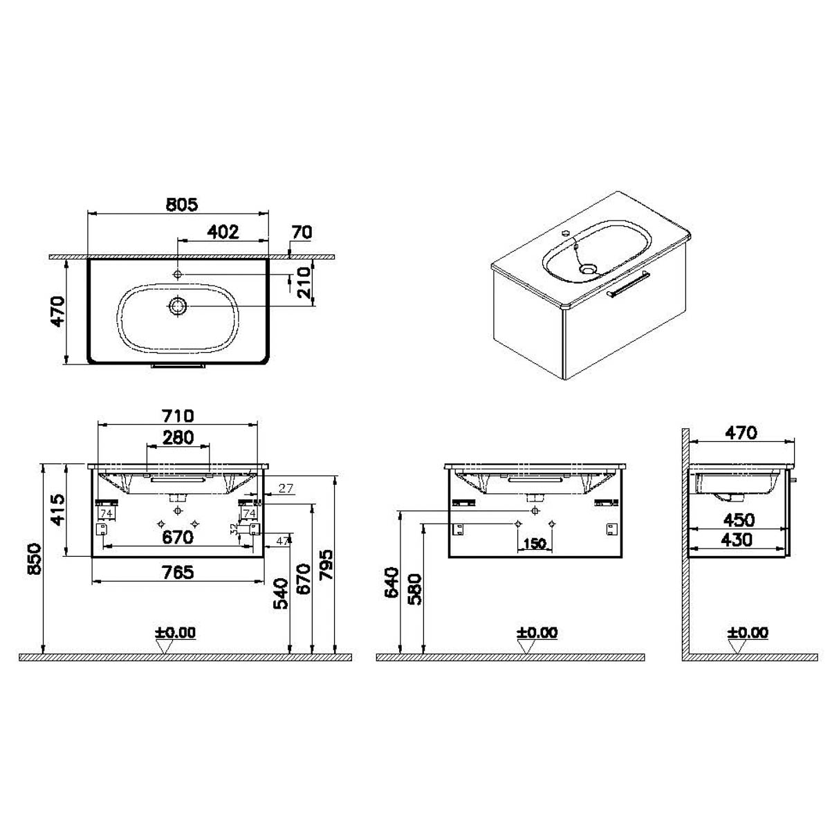 Descriere Calculată 1: Root, Vanity unit, 80 cm,one drawer