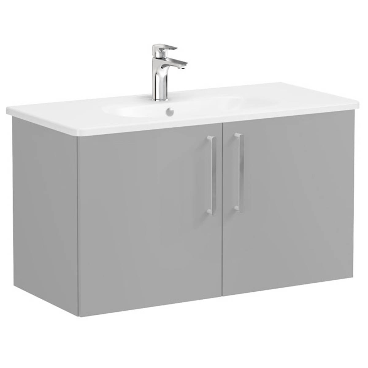 Unitate de baza lavoar baie, cu usi 100cm, mat rock grey, cu rounded lavoar / chiuveta baie | 68170 Matt Rock Grey, Colectia Root Flat Vitra
