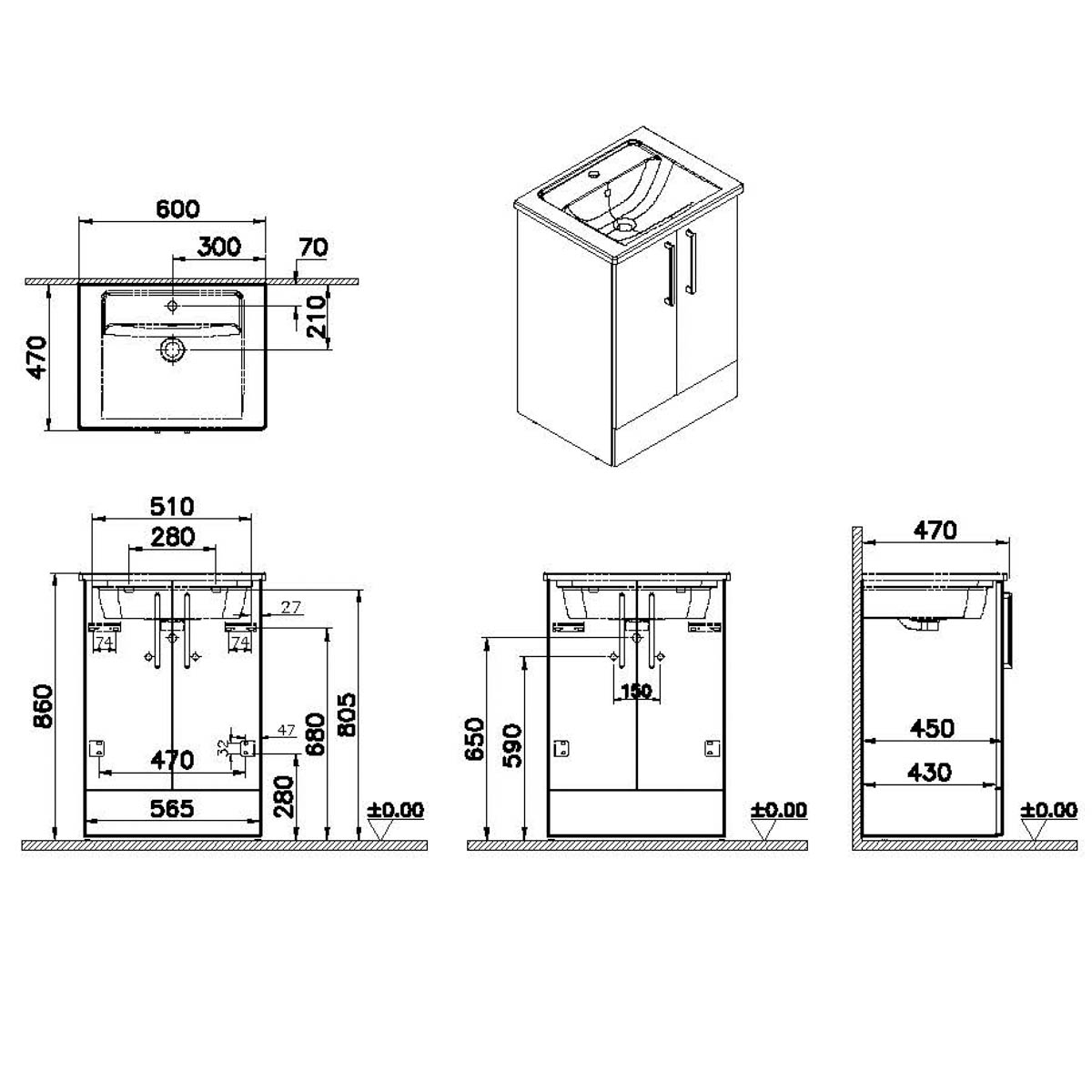 Descriere Calculată 1: Root, Vanity unit, 60 cm,w/doors, floor standing