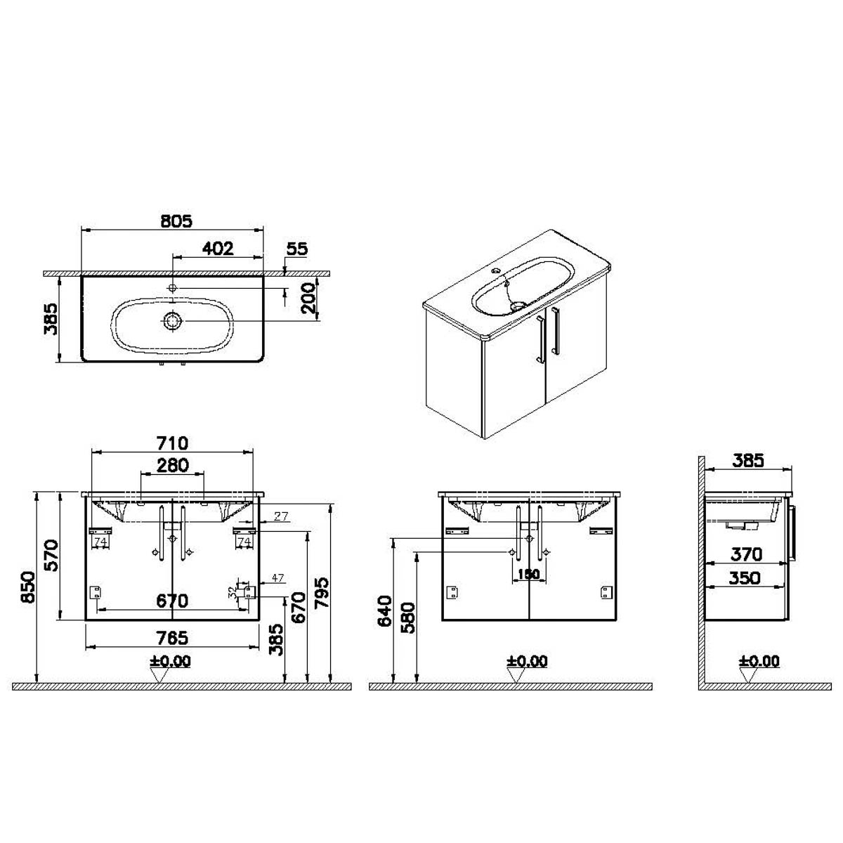 Descriere Calculată 1: Root, Vanity unit, 80 cm, compact,w/doors