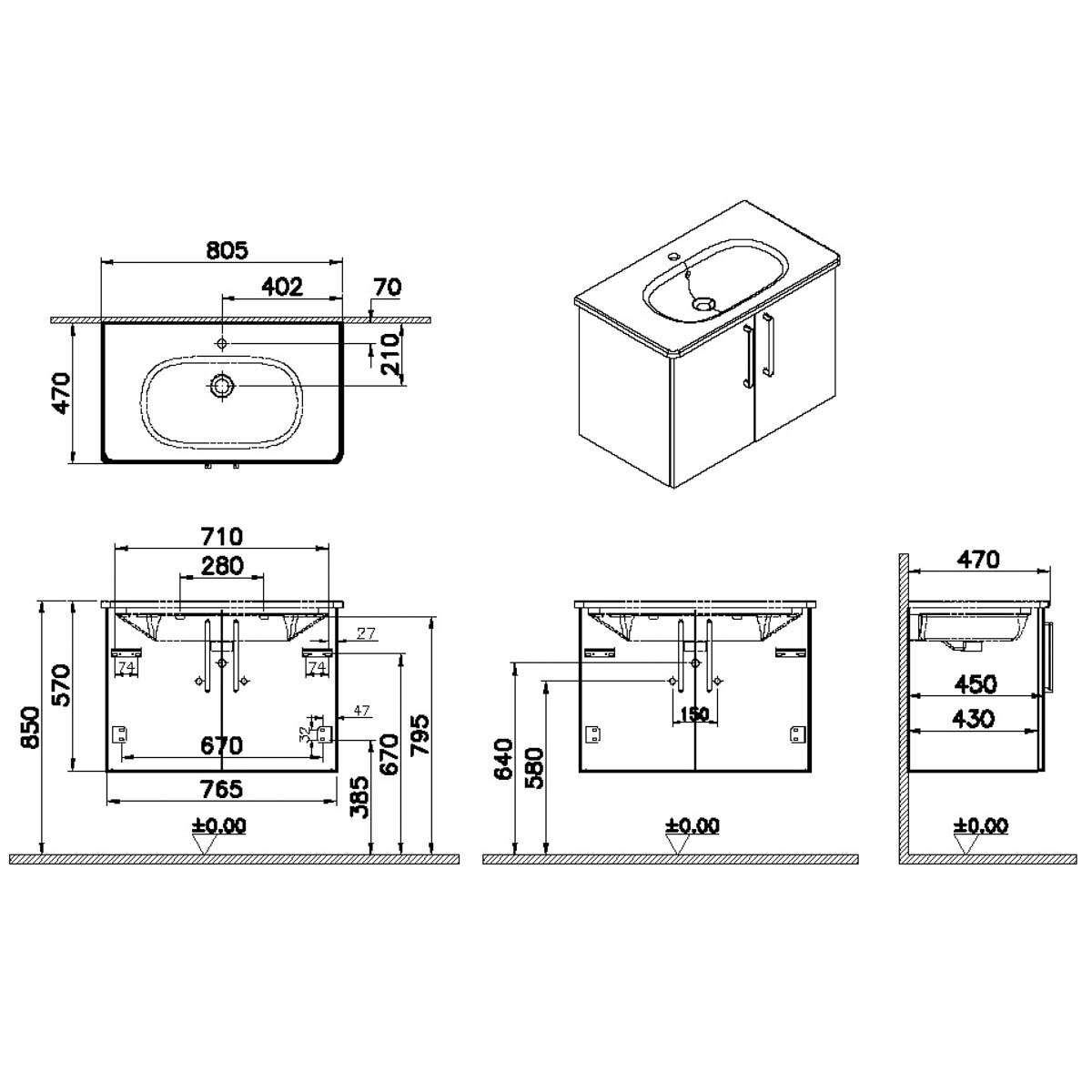 Descriere Calculată 1: Root, Vanity unit, 80 cm,w/doors