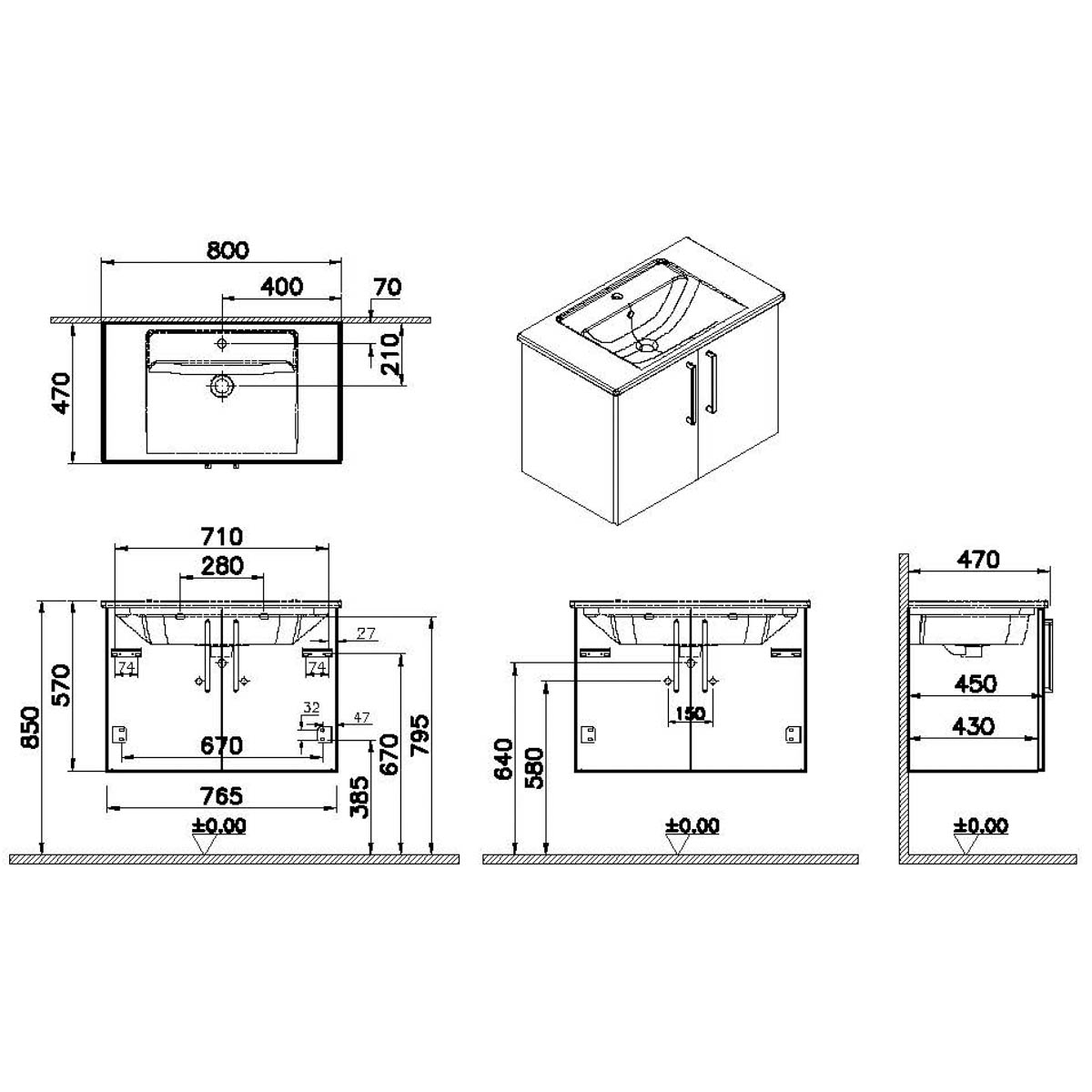 Descriere Calculată 1: Root, Vanity unit, 80 cm,w/doors