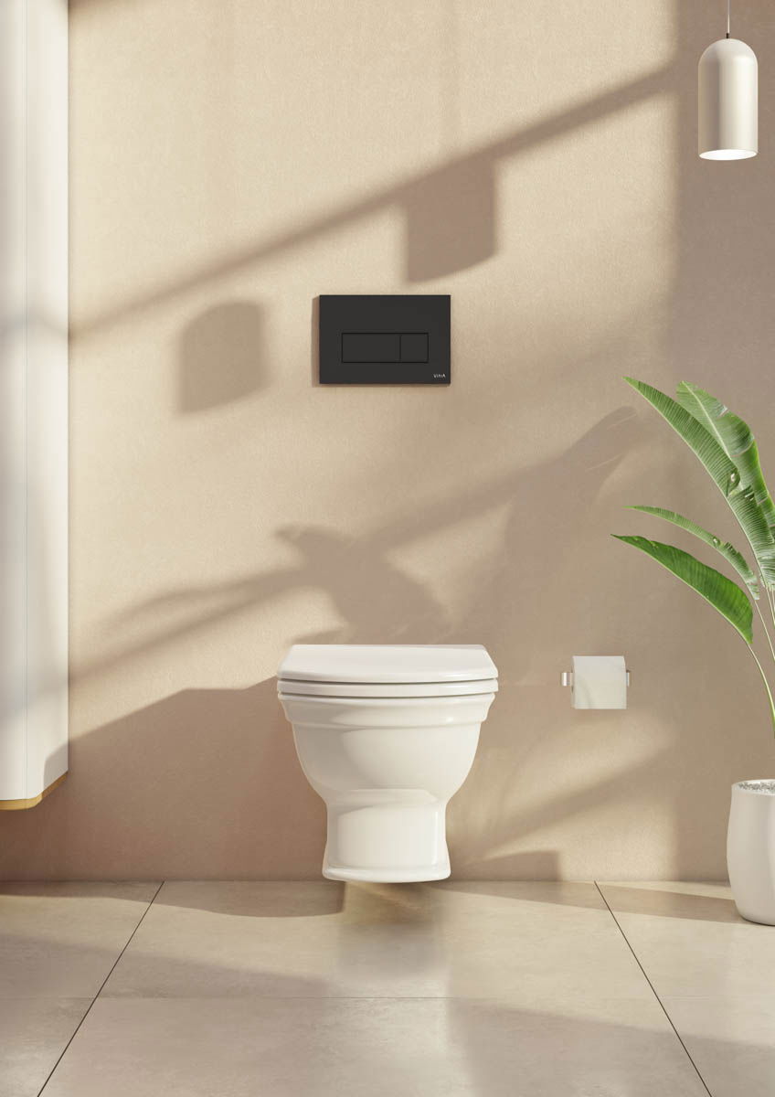 Designul patrat si finisajul negru mat se potrivesc perfect in orice baie moderna.