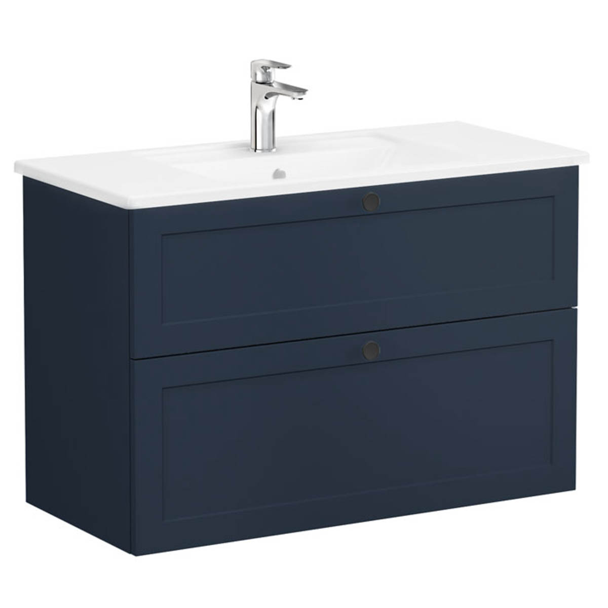 Unitate de baza lavoar baie, cu doua sertare 100cm, mat dark albastru, cu angular lavoar / chiuveta baie | 68881 Matt Dark Blue, Colectia Root Classic Vitra