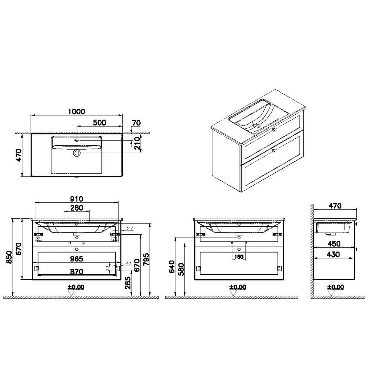 Descriere Calculată 1: Root Classic, Vanity unit, 100 cm,two drawers