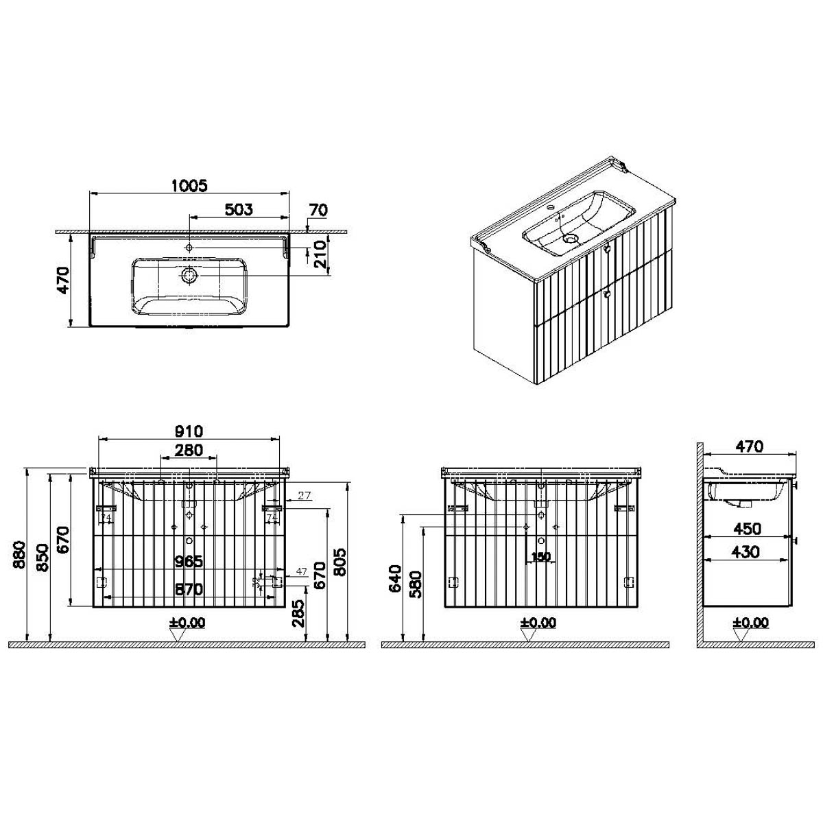 Descriere Calculată 1: Root Groove, Vanity unit, 100 cm,two drawers