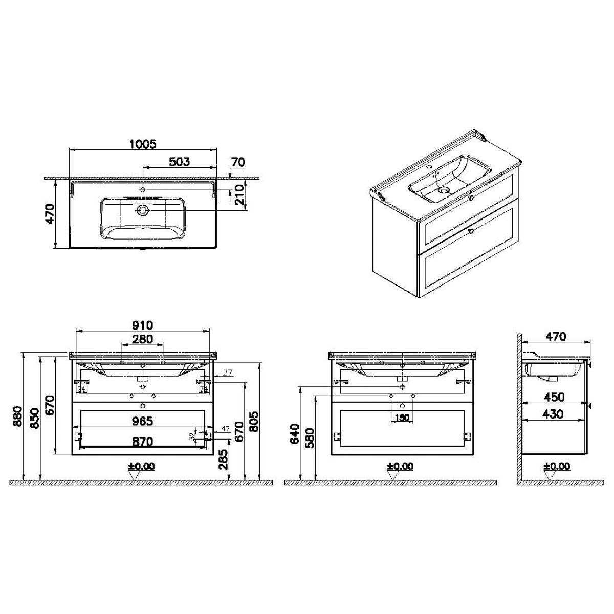 Descriere Calculată 1: Root Classic, Vanity unit, 100 cm,two drawers
