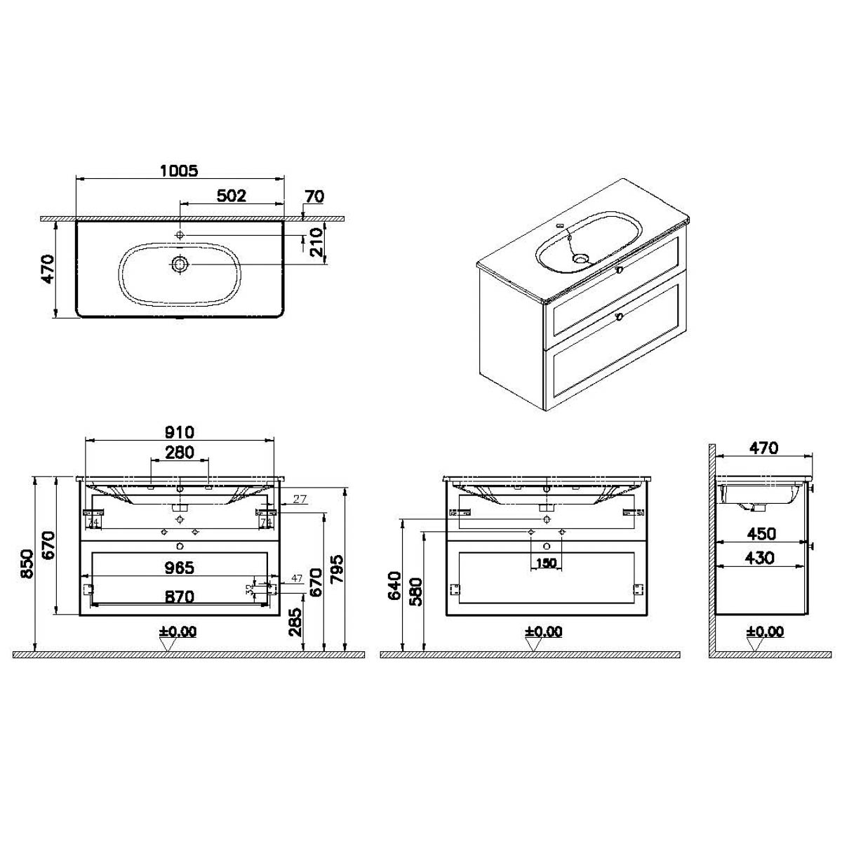 Descriere Calculată 1: Root Classic, Vanity unit, 100 cm,two drawers