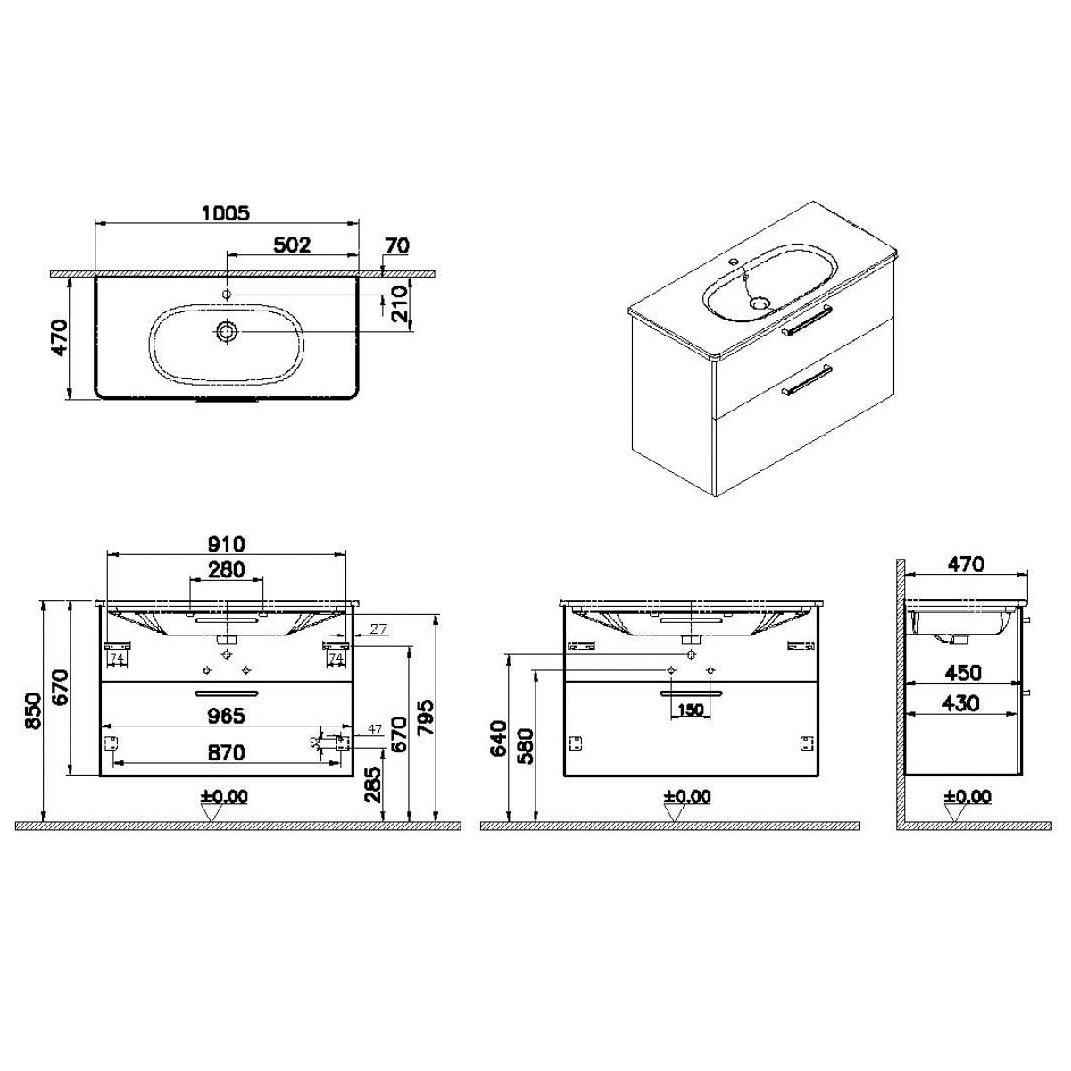 Descriere Calculată 1: Root, Vanity unit, 100 cm,two drawers