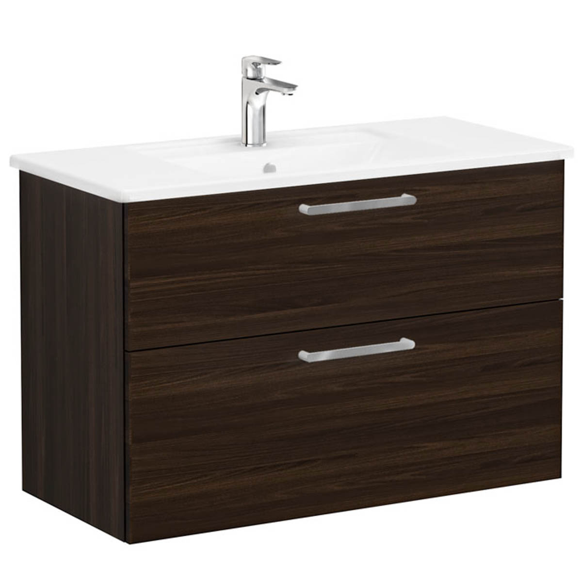 Vitra Unitate de baza lavoar baie, cu doua sertare 100cm, walnut, cu angular lavoar / chiuveta baie | 68311 Walnut, Colectia Root Flat Vitra