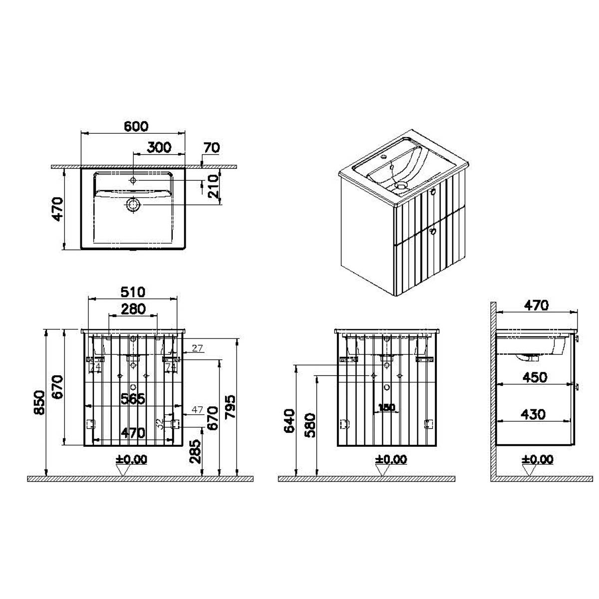 Descriere Calculată 1: Root Groove, Vanity unit, 60 cm,two drawers