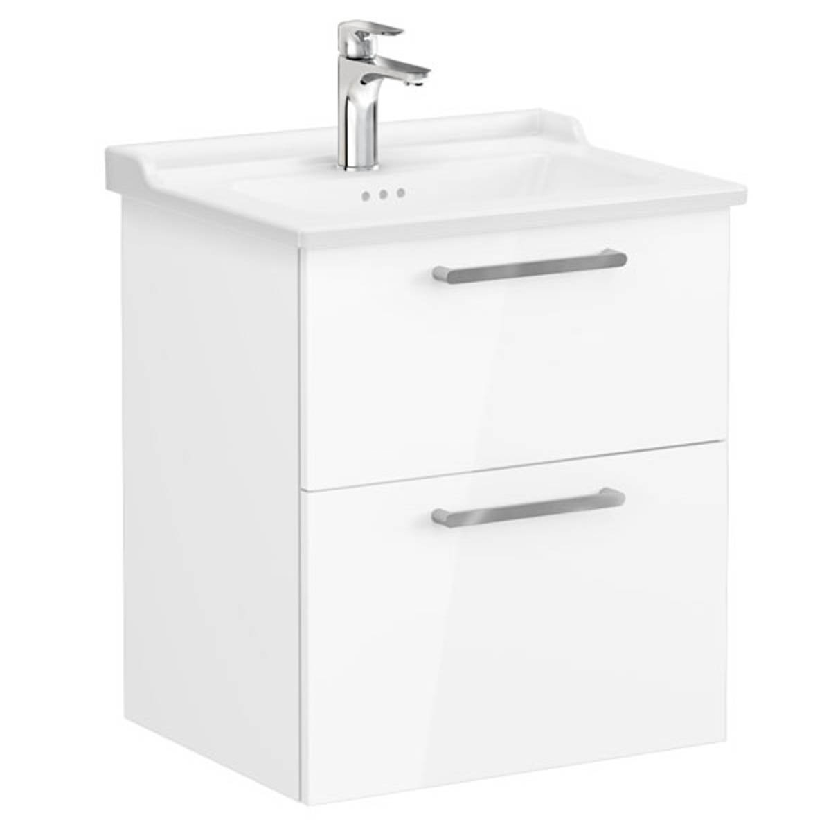 Unitate de baza lavoar baie, cu doua sertare 60cm inalt gloss alb, cu classical lavoar / chiuveta baie | 68275 Glossy white, Colectia Root Flat Vitra