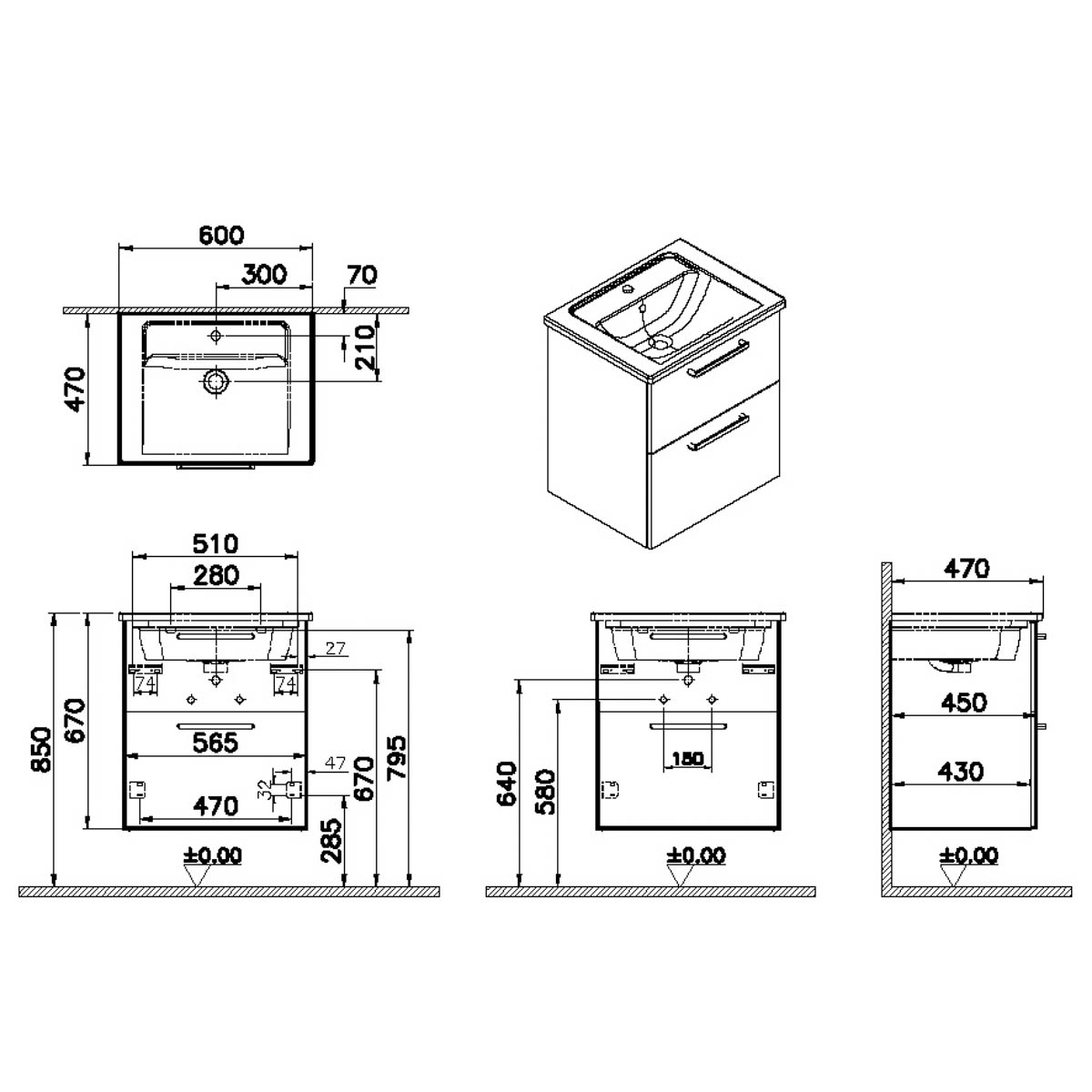 Descriere Calculată 1: Root, Vanity unit, 60 cm,two drawers