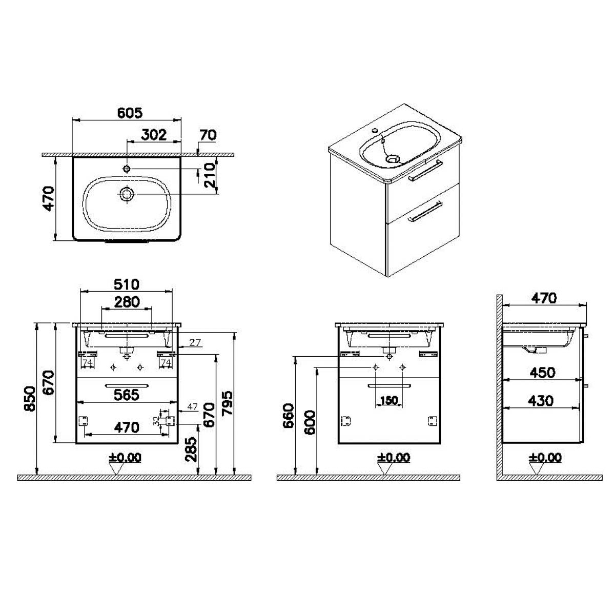 Descriere Calculată 1: Root, Vanity unit, 60 cm,two drawers