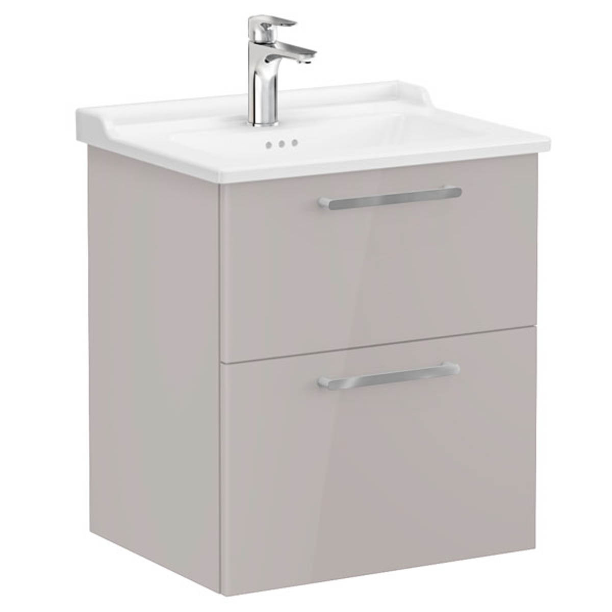 Unitate de baza lavoar baie, cu doua sertare 60cm inalt gloss sahara beige, cu classical lavoar / chiuveta baie | 68278 Bright Sahara Beige, Colectia Root Flat Vitra