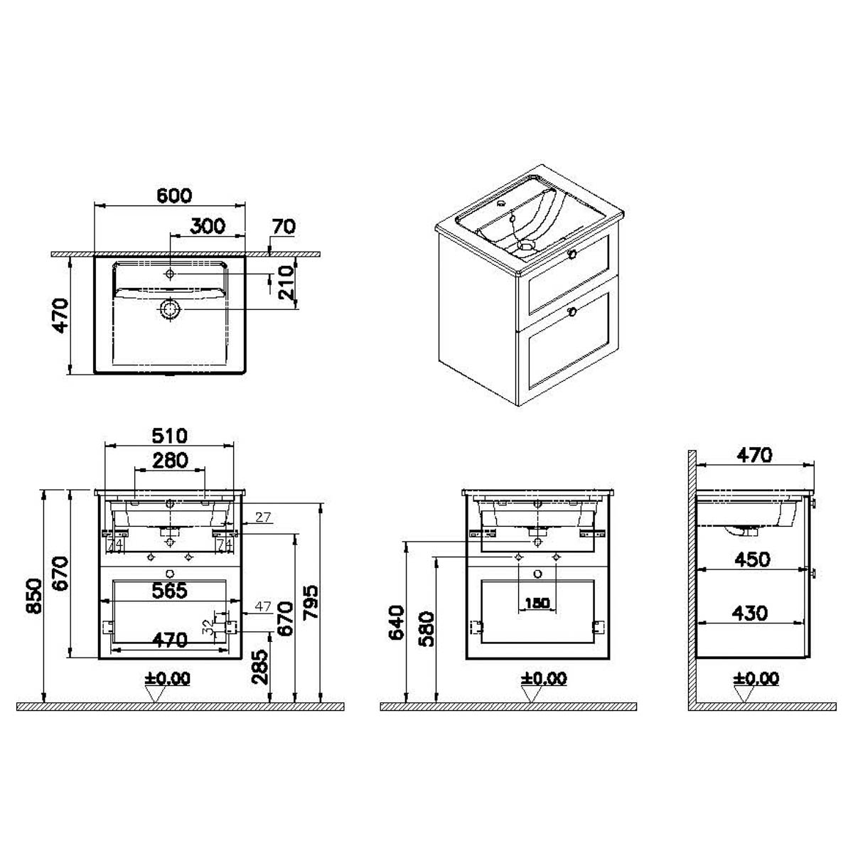 Descriere Calculată 1: Root Classic, Vanity unit, 60 cm,two drawers