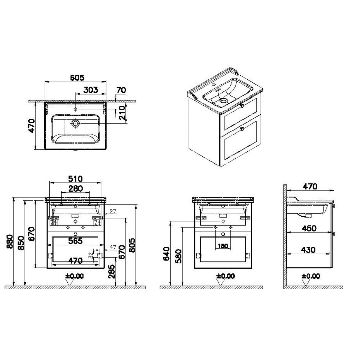 Descriere Calculată 1: Root Classic, Vanity unit, 60 cm,two drawers