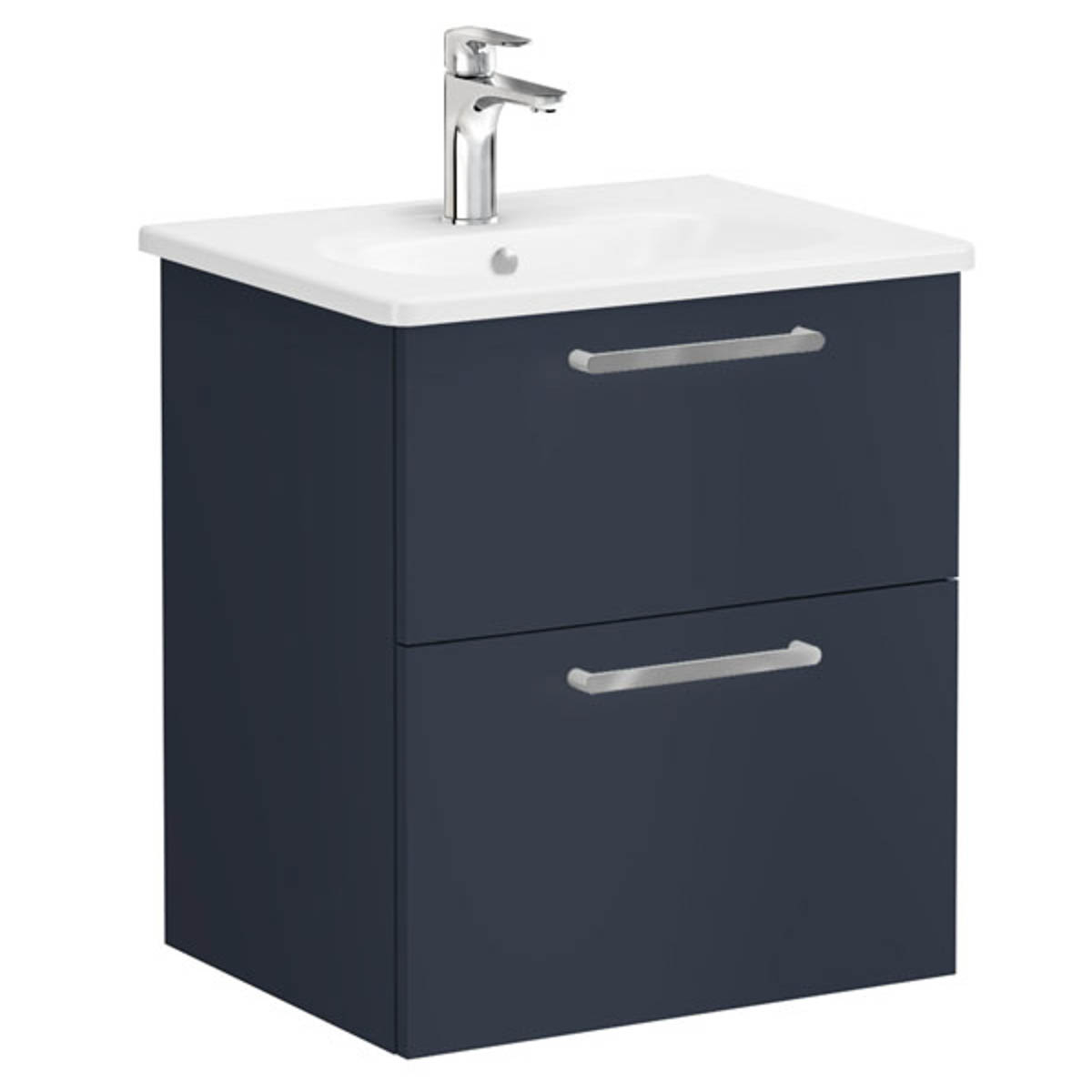 Unitate de baza lavoar baie, cu doua sertare 60cm mat dark albastru, cu rounded lavoar / chiuveta baie | 68273 Matt Dark Blue, Colectia Root Flat Vitra