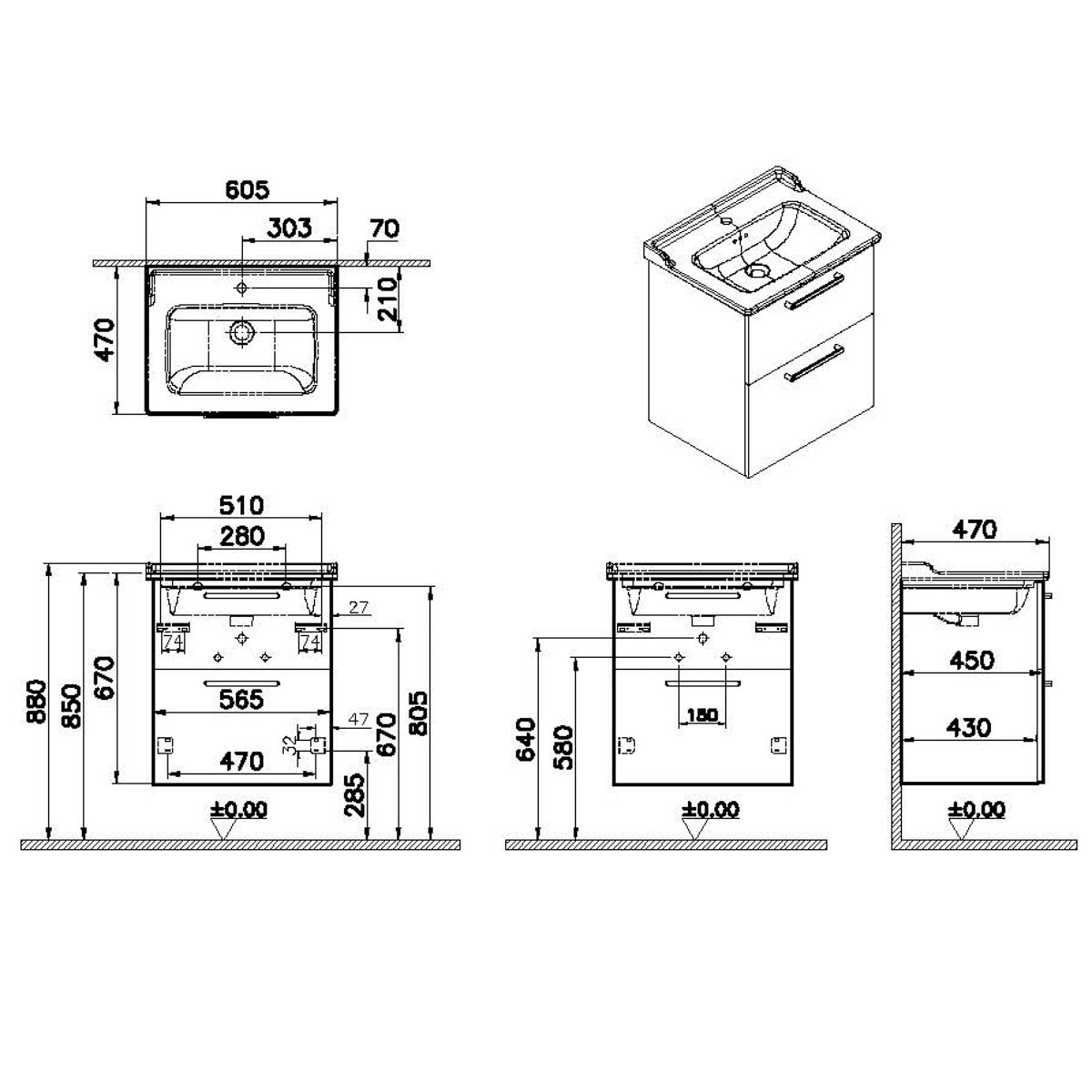 Descriere Calculată 1: Root, Vanity unit, 60 cm,two drawers