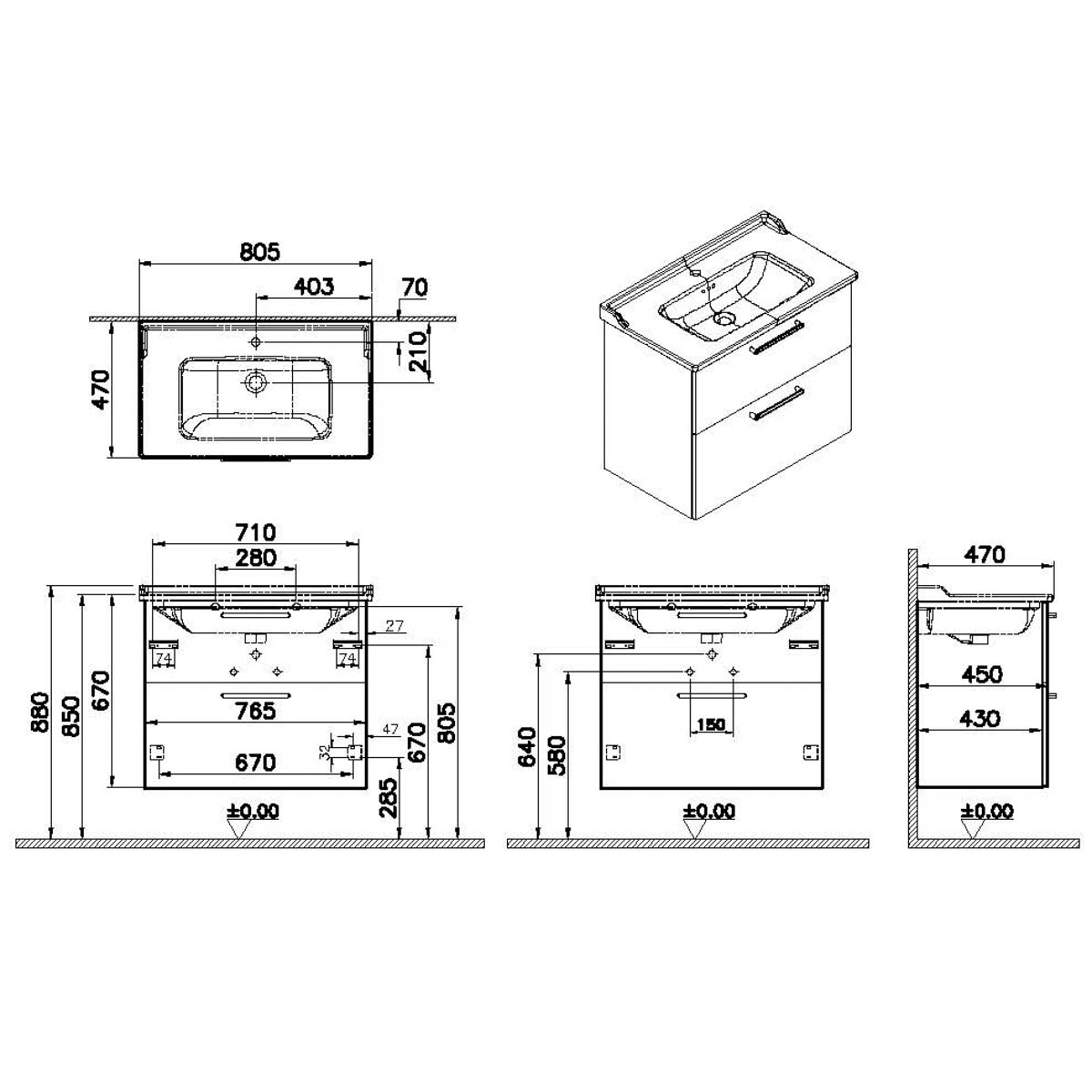 Descriere Calculată 1: Root, Vanity unit, 80 cm,two drawers