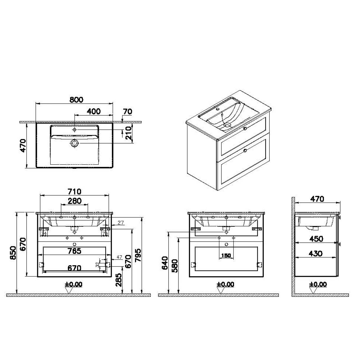 Descriere Calculată 1: Root Classic, Vanity unit, 80 cm,two drawers