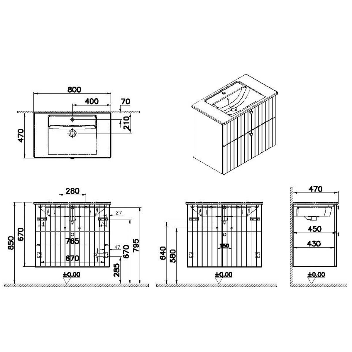 Descriere Calculată 1: Root Groove, Vanity unit, 80 cm,two drawers