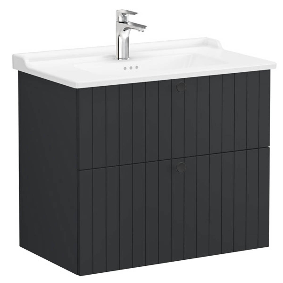 Unitate de baza lavoar baie, cu doua sertare 80cm, mat graphite, cu classical lavoar / chiuveta baie | 69447 Matt graphite, Colectia Root Groove Vitra