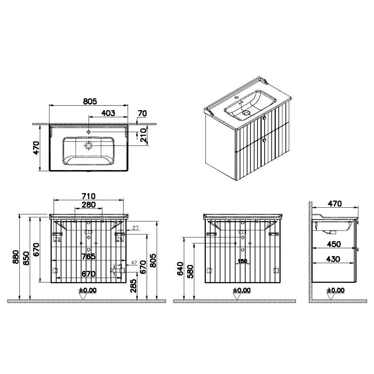 Descriere Calculată 1: Root Groove, Vanity unit, 80 cm,two drawers